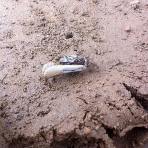 マングローブの林床には、甲殻類のオキナワアナシャコの営巣による円錐状の土塚・二枚貝(シナレシジミ)・ガザミ・ハゼ・チヌ等を始め、その上流には、今絶滅の危機にさらされ保護の声が高まっている、天然リュウキュウアユ等さまざまな生き物が生息し、その重要な生息源となっているのがマングローブ原生林です。